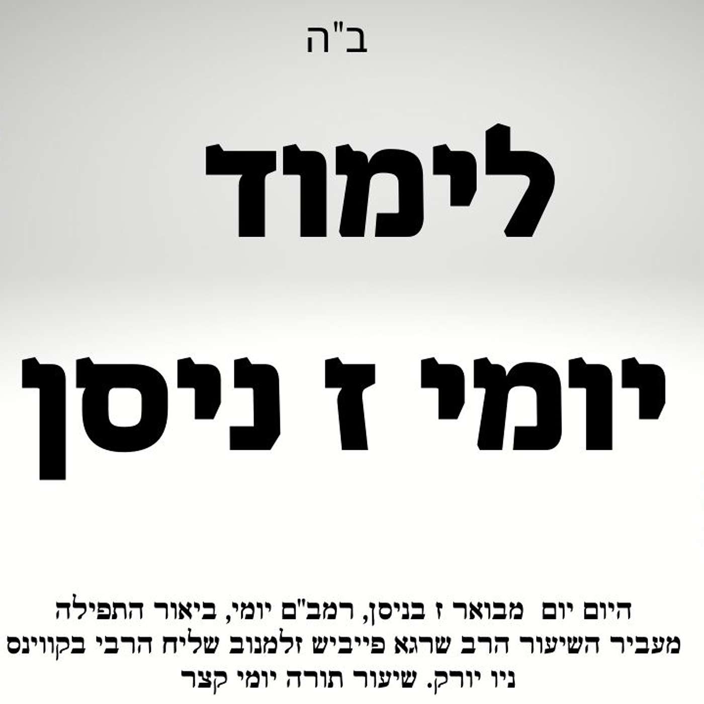 00:00 לימוד יומי היום יום ז ניסן02:50 רמב"ם הלכה יומית06:08 ביאור תפילת שחריתלצפיה בשיעורhttps://youtu.be/ONSQz3yI9cIמקור היום יום ז ניסןנוסח "ויהי בנסוע": "וכרצון כל עמך בית ישראל".כינוי משפחה של רבינו הזקן: ברוכאוויטש.כינוי משפחה של בנו אדמו"ר האמצעי: שניאורי.כינוי משפחה של הצמח צדק: שניאורסאהן.שיעור תורה יום יומי וחסידי קצר עם הרב שרגא פייביש זלמנוב שליח הרבי מליובאוויטש לקווינס ניו יורק יסביר שלושה נושאים בקצרה: מתחילים בביאורים והסברים על ספר היום יום בעברית ז בניסן, הלכה קצרה מהרמב"ם וביאור תפילת שחרית שיר של יום שישי.#היום_יום#שיעור_יומי#רמבםהרשמו לזריקת חסידות בערוצים השוניםלומדים יהדות וחסידות ברשת, הרשמו לערוץ היוטיוב, פייסבוק, ווצאפ ,פודקאסטים ועודhttps://heb.centernyc.com/zrikat