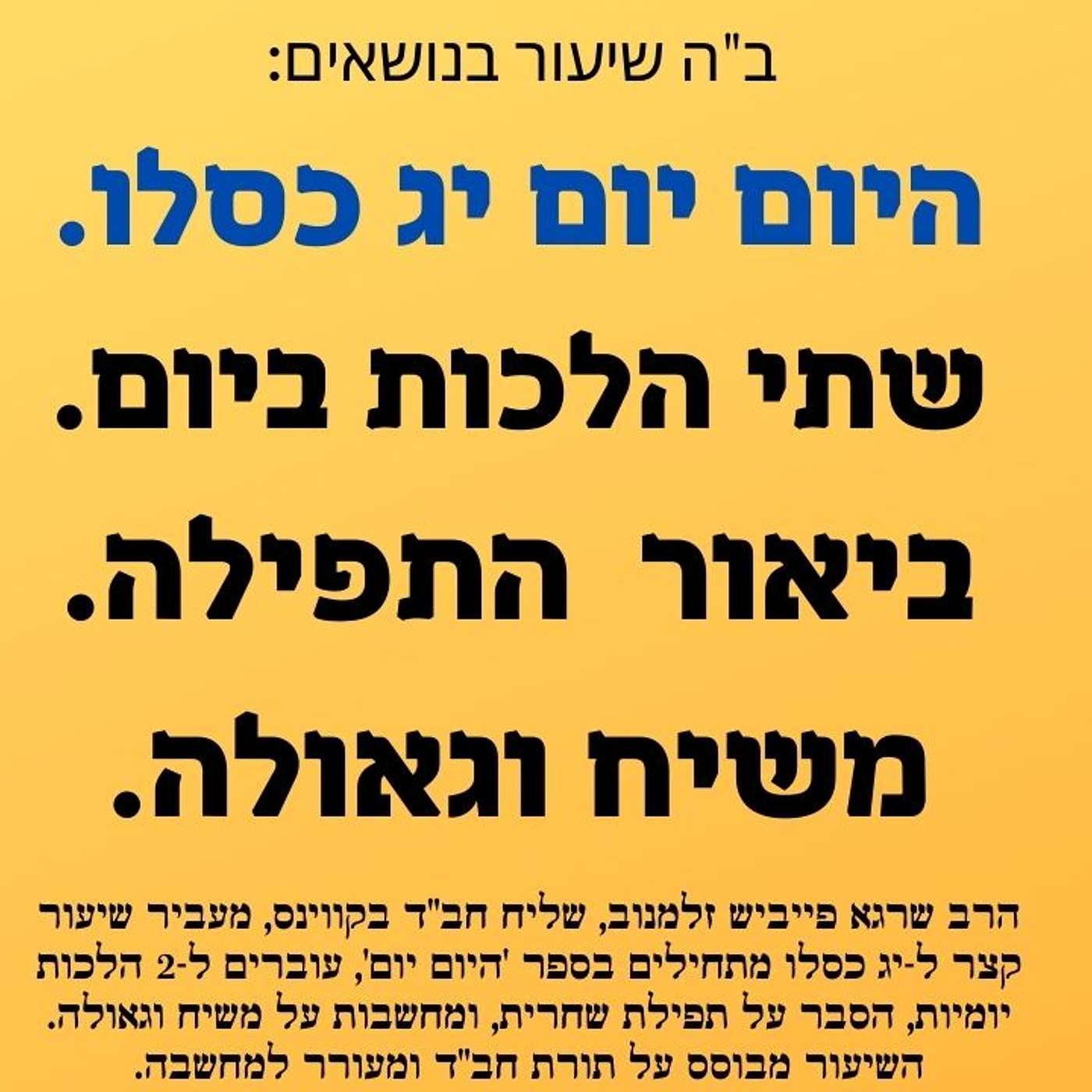 זריקת חסידות הפודקאסט • היום יום יג כסלו טעימה מהיום יום 2️⃣ הלכות יומיות 📖 ביאור התפילה ✨ומבט אל הגאולה ❤️ שיעור חסידות • Listen on Fountain