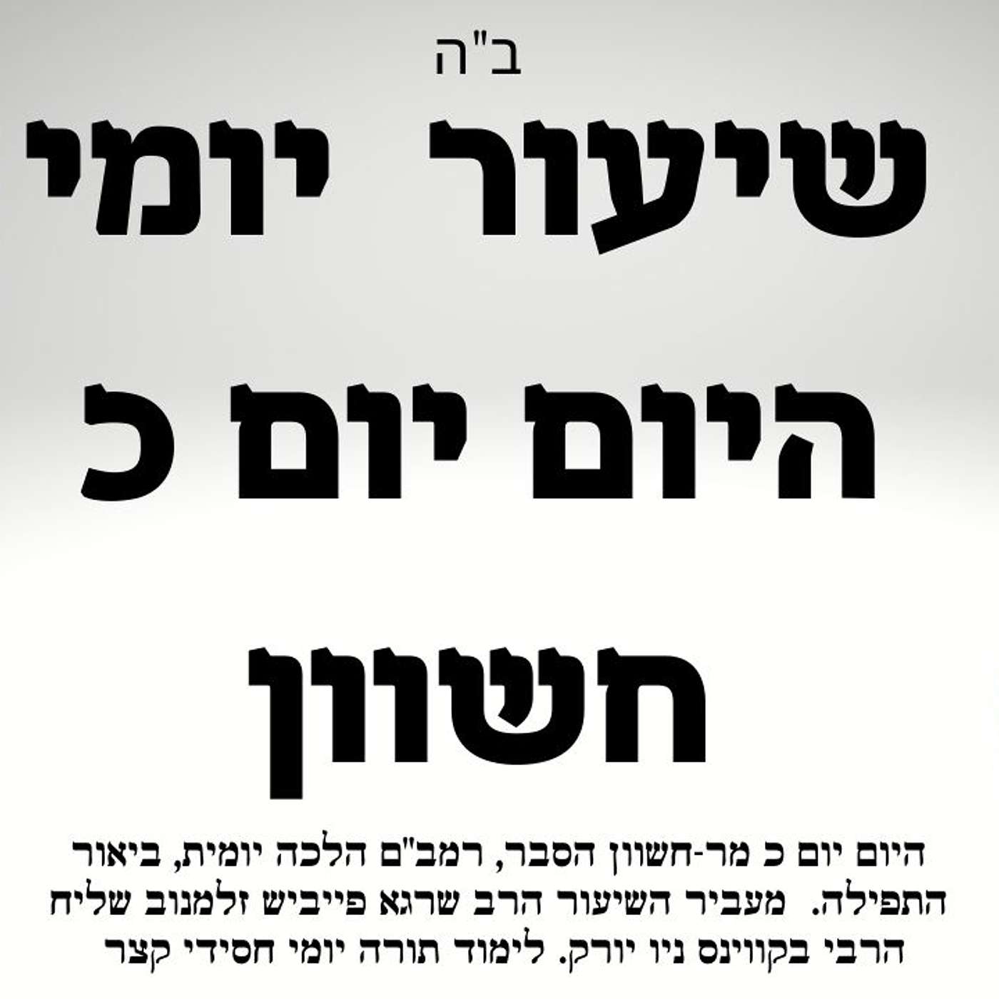 זריקת חסידות הפודקאסט • כ חשוון ביאור היום יום בעברית, רמב"ם-הלכה יומית וביאור התפילה 📖שיעור תורה יומי היום יום כ' במר-חשוון • Listen on Fountain