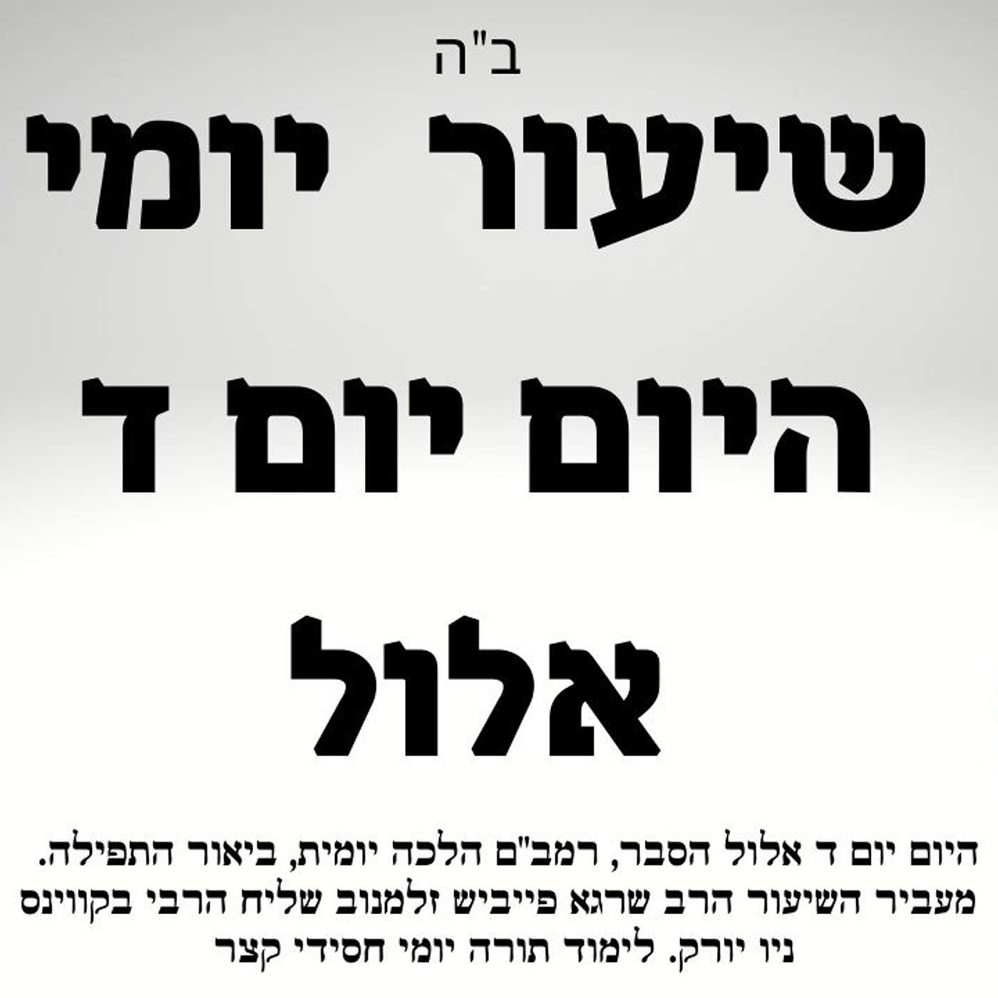 היום יום ד אלול בעברית: סדר ברכות התורה: נוגע בטליתו בתחילת הקריאה ובסופה, נושק הטלית במקום שנגע בספר תורה, גולל הספר תורה, מפנה פניו, קצת, לימין ומברך. פותח הספר תורה וקורא.במעלת מין האנושי, ישנם ארבעה תוארים: אדם – מעלת המוחין והשכל, איש – מעלת הלב והמידות, אנוש – החלישות באחד מהם בשכל או במידות, או בשתיהם, גבר – מתגבר על עצמו להסיר המניעות ועיכובים להשיג אחת המעלות או בשכל או במידות, היינו דגבר עוסק עם האנוש להגביהו למעלת איש או אדם.ומאחר דאפשר לעשות מאנוש איש או אדם, הרי בהכרח דגם באנוש ישנם כל אותם המעלות שישנם באיש וגם באדם.לצפיה בשיעור https://youtu.be/_87Bn88uAZM///שיעור תורה יום יומי קצר וחסידי מותאם לתאריך העיברי ד אלול. השיעור קצר אבל כולל בתוכו חסידות, הלכה ופירושי התפילה עם הרב שרגא פייביש זלמנוב שליח הרבי מליובאוויטש לקווינס ניו יורק יסביר שלושה נושאים בקצרה: 1. ספר היום יום ד באלול בעיברית, באיור והסברים2. הלכות בקצרה מהרמב"ם,3. ביאור והסברים על תפילת שחרית.#היום_יום#שיעור_יומי#רמבם#חסידותבחסותhttps://allmychildrendaycare.com/הרשמו לזריקת חסידות בערוצים השוניםלומדים יהדות וחסידות ברשת, הרשמו לערוץ היוטיוב, פייסבוק, ווצאפ ,פודקאסטים ועודhttps://heb.centernyc.com/zrikat