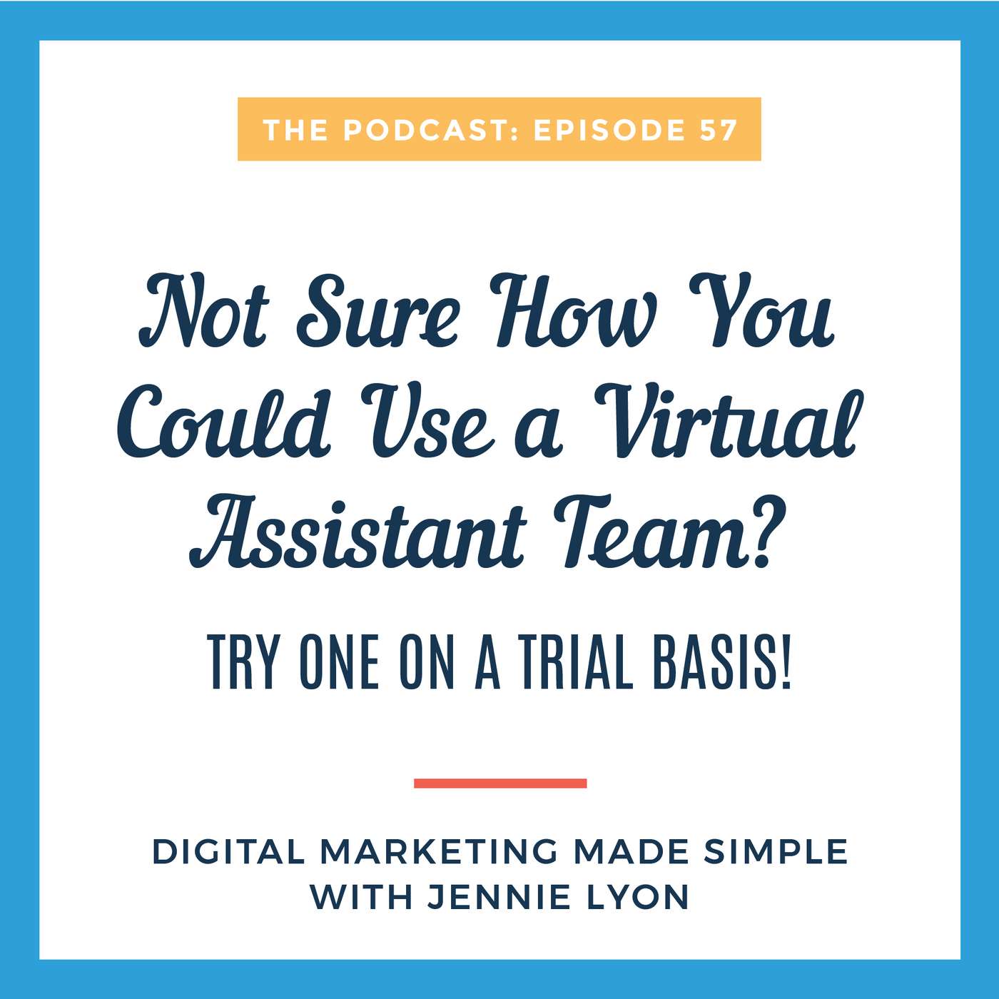 Making a big change at your small business can be scary.That’s one of the reasons why so many small business owners just keep plowing ahead with “what works” rather than making a change that could dramatically benefit their business. There are too many unknowns! That’s one of the biggest reasons why more people don’t make use of a virtual team. Bringing on someone from outside your business can seem like too big a change!In this week’s episode, I’m going to explain why using our virtual team for the first time is way easier than you might think! With an experienced and respected virtual team, you don’t need to worry about being locked into a long-term contract. Instead, you can simply use us for individual projects. Try hiring us on a trial basis and see how it can change your business for the better!View complete details on my blog post!Links For This Episode:Workbook: How to Use Our Digital Marketing Team to Grow Your Business and Get Your Life BackGet in touch with Jennie:JennieLyon.comjennie@jennielyon.comBook a Free ConsultationFacebookInstagramTwitterLinkedInPinterest