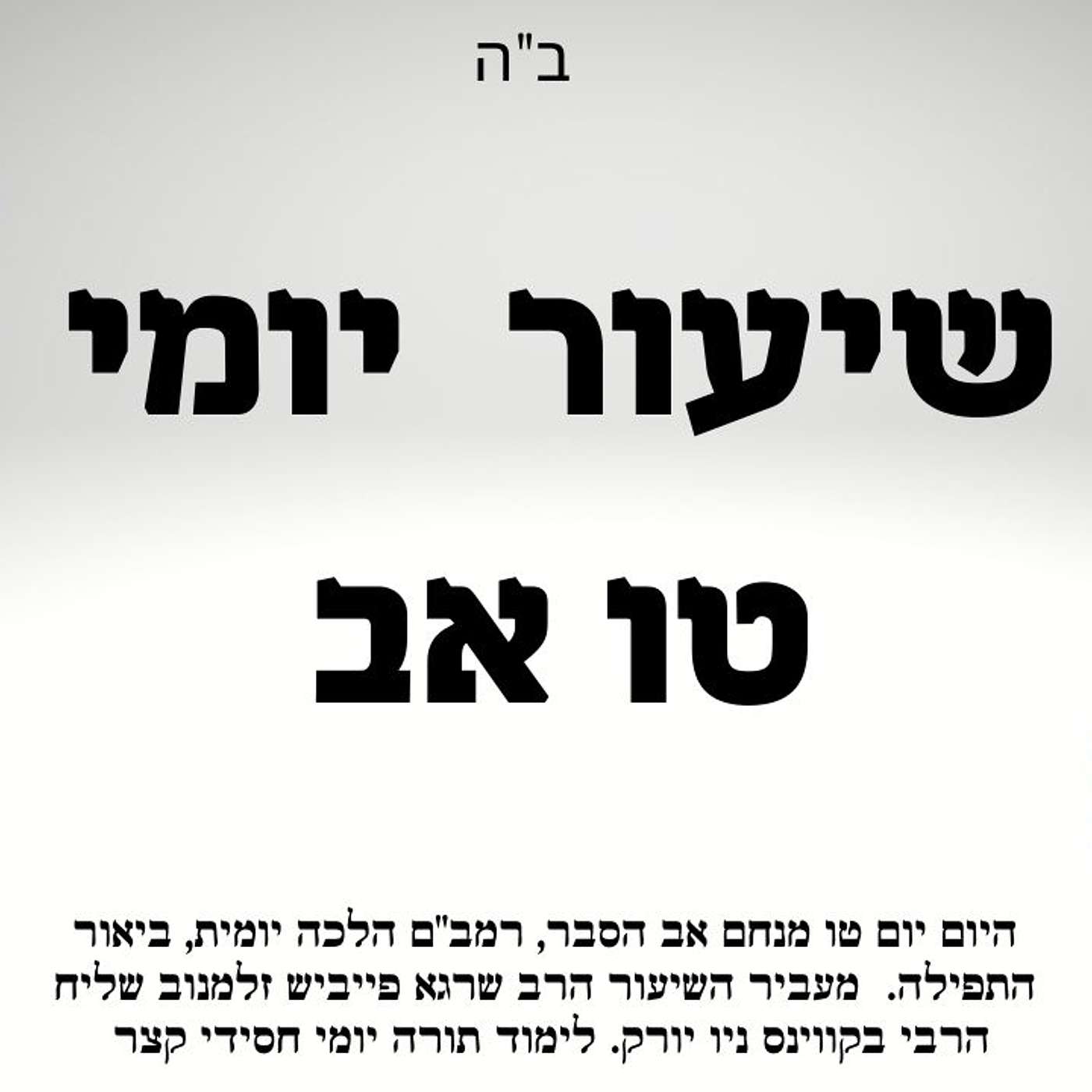 זריקת חסידות הפודקאסט • טו אב ביאור היום יום בעיברית, רמב"ם הלכה יומית 🙌 ביאור התפילה. שיעור תורה יומי בספר היום יום ט"ו באב • Listen on Fountain