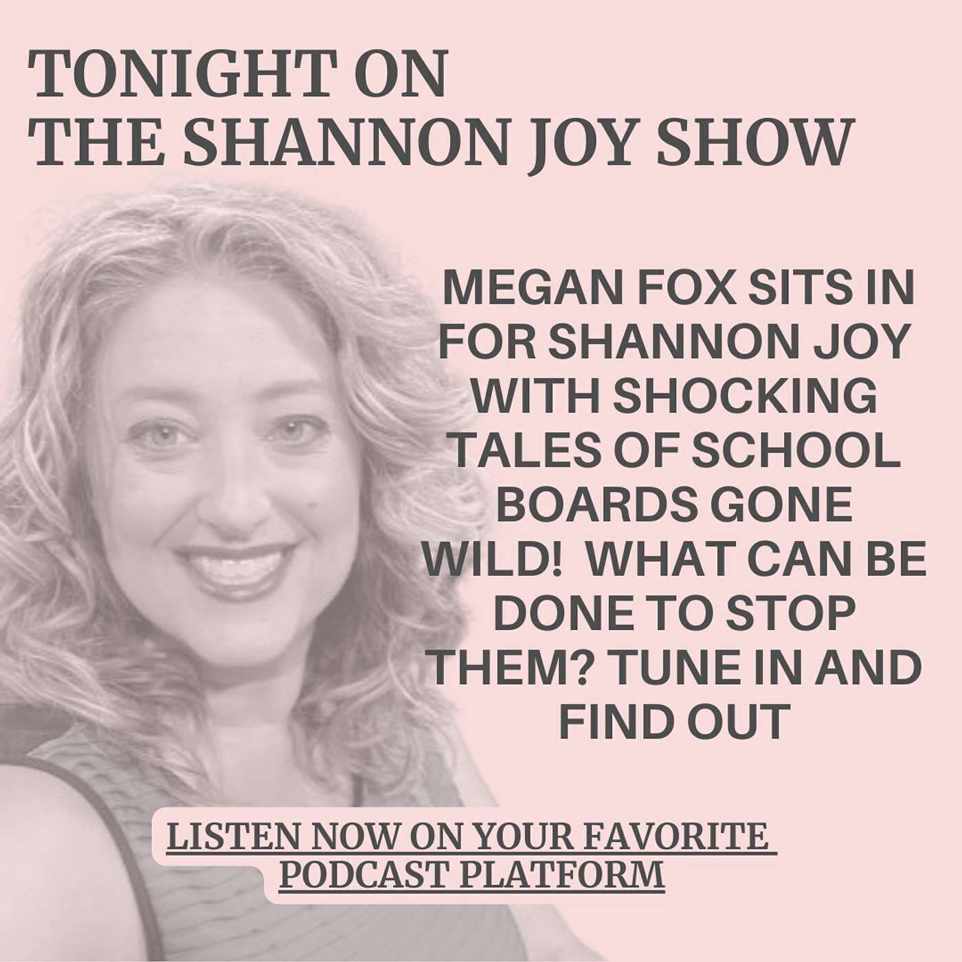 The Shannon Joy Podcast • Monday December 26 - Megan Fox sits in for Shannon Joy with shocking tales of school boards gone wild! What can be done to stop them? Tune • Listen on Fountain