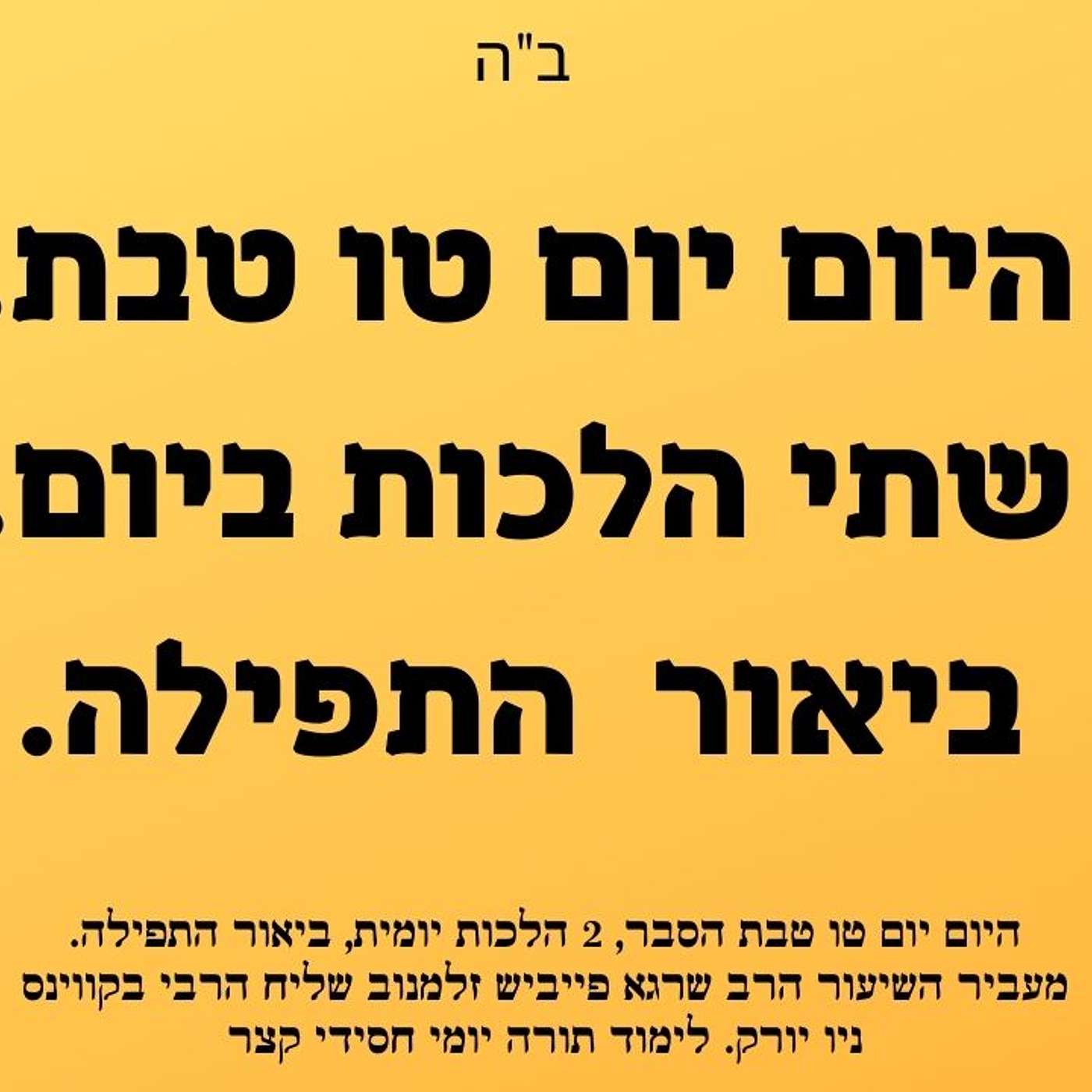 בשיעור הרב שרגא פייביש זלמנוב שליח חב"ד בקווינס יעבור על 3 נושאים בקצרה:1. היום יום טו בטבת2 שתי הלכות3. ביאור התפילהבפודקאסט\וידיאו אנחנו מעלים שיעור תורה יום יומי קצר וחסידי מסודר ומבואר בעברית לפי היום יום - לוח אור זרוע לחסידי חב"ד השיעור כולל בתוכו חסידות, הלכה יומית למעשה ופירוש תפילת שחרית.המקור ספר היום יום טו טבת:תורה אור דיבור המתחיל "אוסרי" סעיף המתחיל "והנה זהו", צריך להיות: "והעלאת ניצוצות שנפלו אפילו הבהמות יתעלו כמו שהיה בתחילת".הסכת ושמע ישראל, העת הזאת היא מועד הגאולה על ידי משיח צדקנו, והיסורים הבאים עלינו הם חבלי משיח, ואין ישראל נגאלין אלא בתשובה. אל תאמינו לנביאי השקר המבטיחים לכם ישועות ונחמות אחרי כלות המלחמה, זכרו דבר ה' (ירמיה יז, ה) ארור הגבר אשר יבטח באדם ושם בשר זרועו ומן ד' יסור לבו. שובה ישראל עד ד' אלקיך, והכן עצמך ובני ביתך לקבל פני משיח צדקנו הבא בקרוב ממש.לצפייה בשיעור https://youtu.be/jRy_xw_HfAg///מידי יום הרב שרגא פייביש זלמנוב שליח הרבי מליובאוויטש לקווינס ניו יורק יסביר שלושה נושאים בקצרה: 1. ביאור \ שיעור: ספר היום יום טו בטבת בעברית, ביאור והסברים2. שתי הלכות למעשה בקצרה.3. ביאור והסברים על התפילה#היום_יום#שיעור_יומי#הלכה_למעשה#הלכות#חסידות#שתי_הלכות#חבד#הרב_שרגא_זלמנוב#תפילה #ביאור_התפילה✨ מצוה להפיץ! 📲תָּנָא דְּבֵי אֵלִיָּהוּ זָכוּר לְטוֹב:כֹּל הַשּׁוֹנֶה הֲלָכוֹת בְּכֹל יוֹם - מֻבְטָח לוֹ שֶׁהוּא בֶן הָעוֹלָם הַבָּא!הרשמו לזריקת חסידות בערוצים השוניםלומדים יהדות וחסידות ברשת, הרשמו לערוץ היוטיוב, פייסבוק, ווצאפ ,פודקאסטים ועודhttps://heb.centernyc.com/zrikatהרשמו לזריקת חסידות בערוצים השוניםלומדים יהדות וחסידות ברשת, הרשמו לערוץ היוטיוב, פייסבוק, ווצאפ ,פודקאסטים ועודhttps://heb.centernyc.com/zrikat