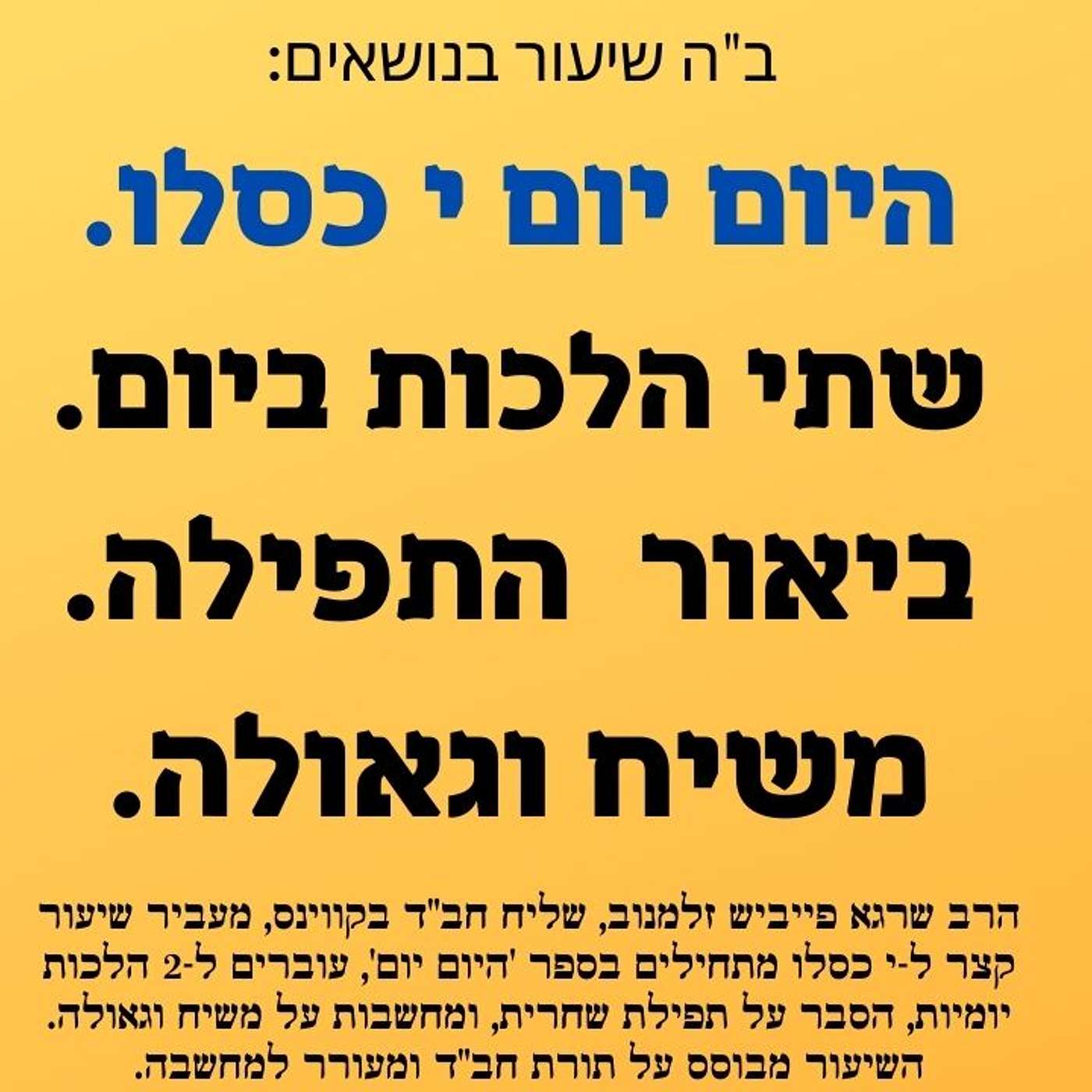 זריקת חסידות הפודקאסט • היום יום י כסלו טעימה מהיום יום 2️⃣ הלכות יומיות 📖 ביאור התפילה ✨ומבט אל הגאולה ❤️ שיעור חסידות • Listen on Fountain